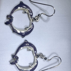These sea turtle dangling earnings are made of sterling silver and are hand painted in hard enamel. The oval part of the earring measures 2.5cm long.