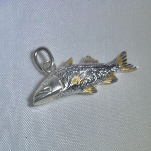 This Pompano fish pendant is casted out of sterling silver and is hand- painted with hard enamel to give the piece a more true-to-life appearance. The pendant is 2.4cm in length.