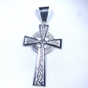 This cross is made of sterling silver and measures 5.5cm by 2.8cm.